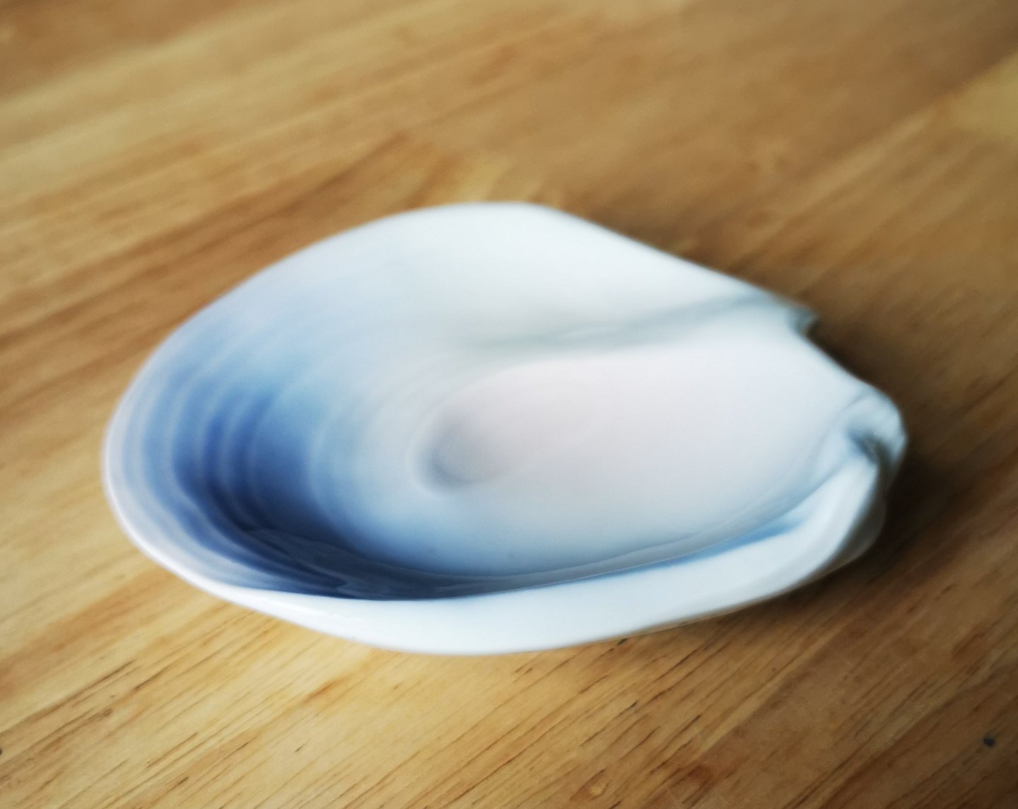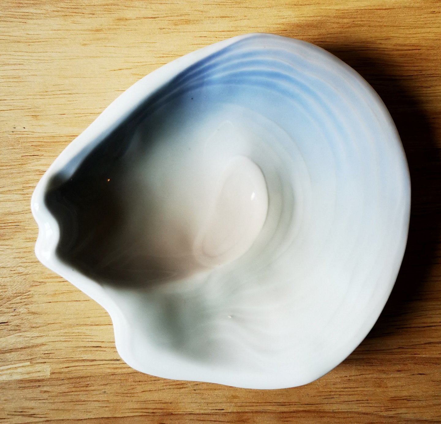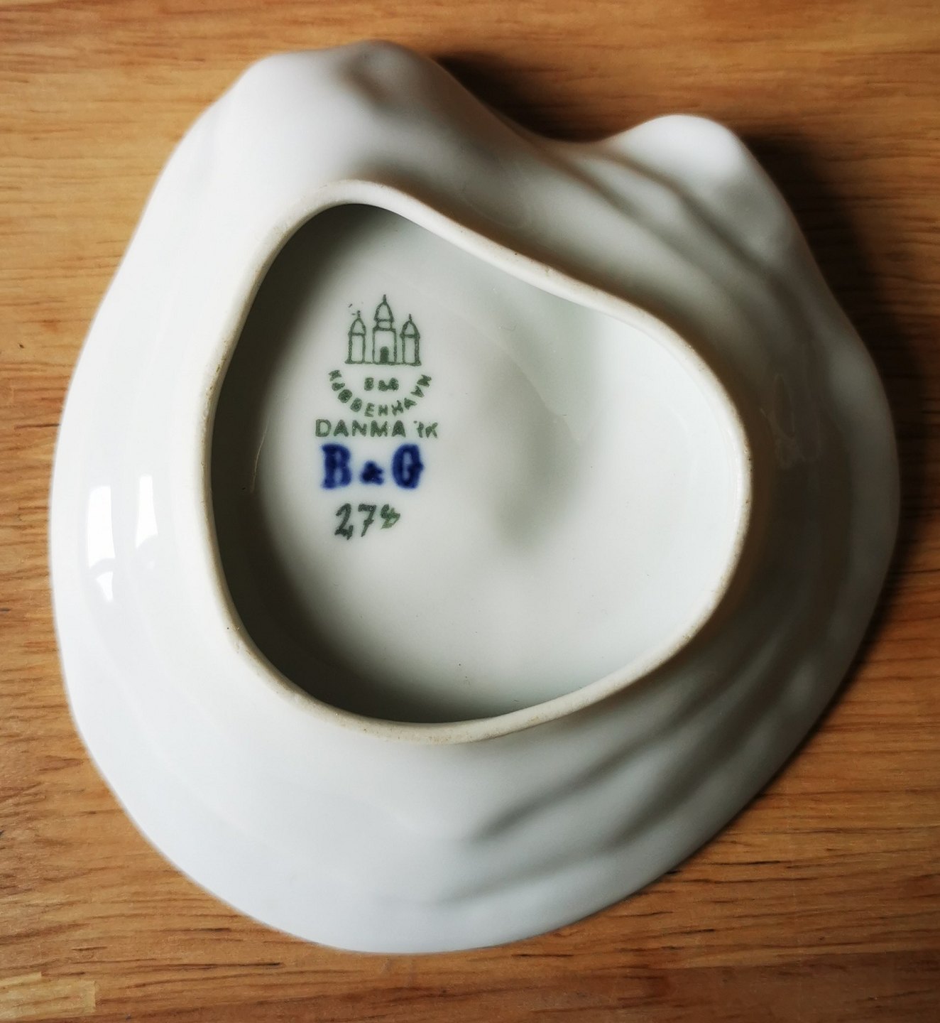 Østersformet skål i porcelæn fra Bing & Grøndahl. Fremstår i perfekt stand. Uden skader eller reparationer. Fabriksmærket på bunden. Modelnummer 278. Mål: H. 3-3½ cm L. 10½ cm.