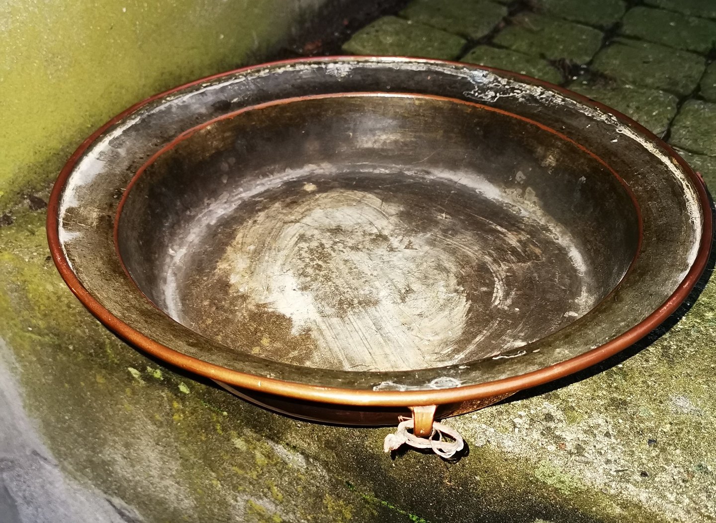 Copper tray with high sides 19th. century. Measures: 8 cm high and 37½ cm in diameter.