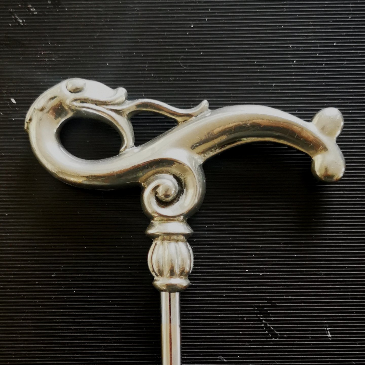Just Andersen figurativ proptrækker i tin. Forestillende fabeldyr eller slange. Fremstår i god stand. Som det fremgår af fotos er skruen lidt skæv. Stemplet med fabrikslogo på undersiden.
