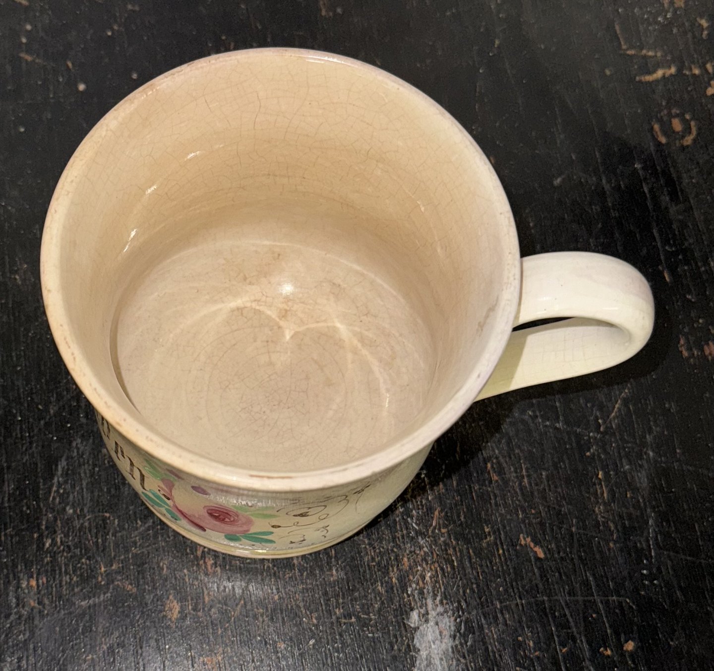 Ældre Aluminia krus i fajance med hank. Håndmalede blomster samt “Leve Landmanden” Fabriksstemplet (utydeligt) på bunden. Almindeligt brugsslid og krakkeleringer. Ingen skader eller reparationer. Mål: 11,5 cm højt