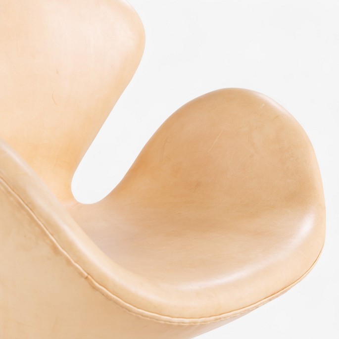 AJ 3320 - 'Svanen' i patineret lyst naturlæder på fod af aluminium m. vippefunktion.