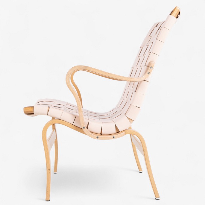 'Eva'-lænestol i patineret bøg med nyt flettet natur kernelæder.. Mærket fra producent.