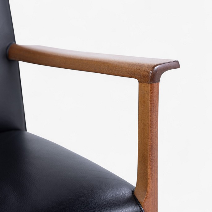 Armchair in mahogany and black leather.