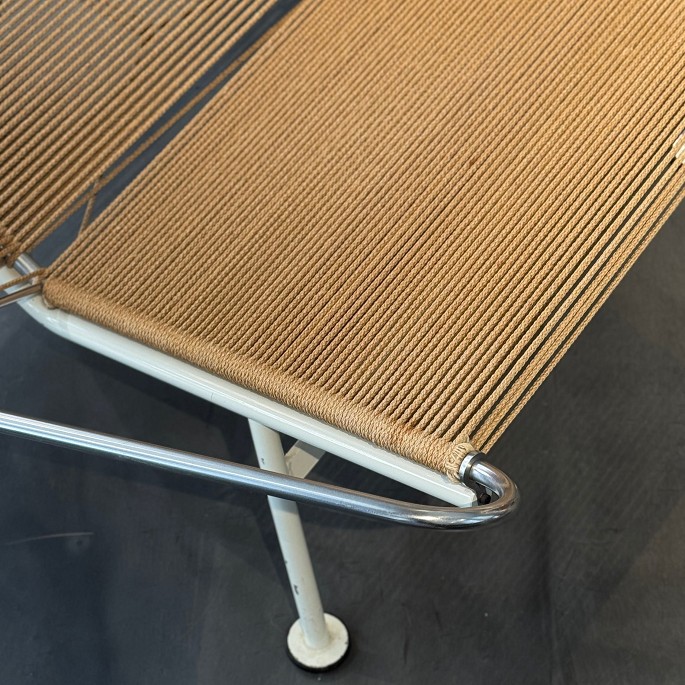 GE 225 - 'Flagline chair' with white base and original flagline and neck cushion. This is a model photo. The appearance of the cushion, lambskin and patina may vary. Please contact us for exact images of this product.