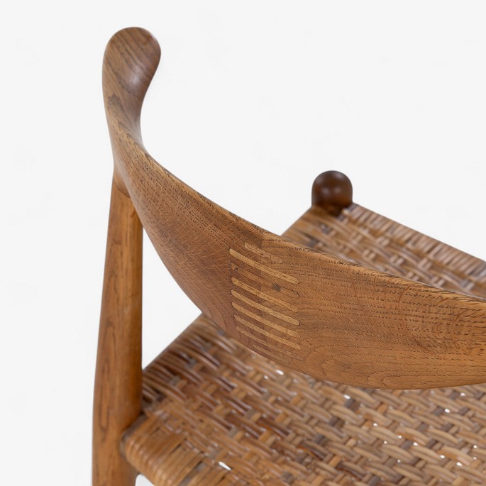 JH 505 - 'Kohorn'-stol i patineret egetræ med sæde i originalt flet.