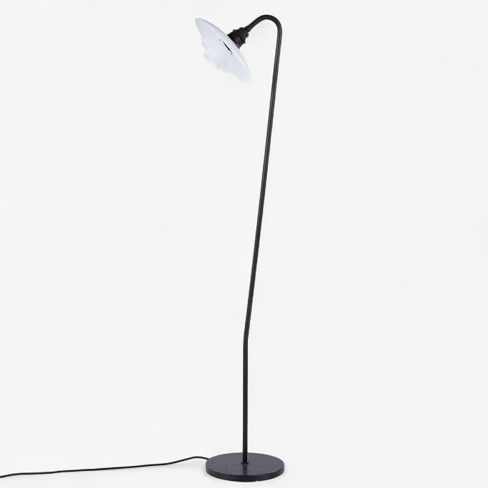 PH 3/2 - 'Syvtallet' gulvlampe med stel i bruneret messing og skærme i hvidt opalglas. Stemplet 'Patented'.