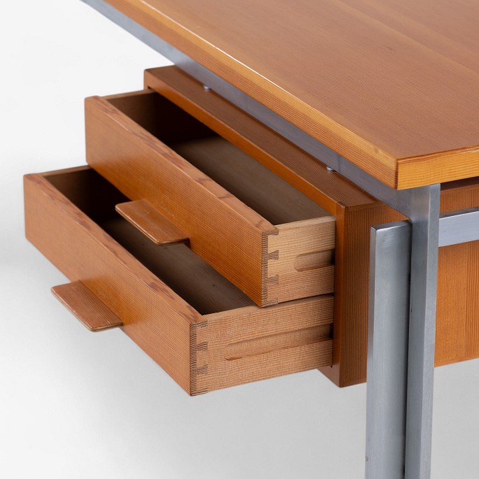 PK 55 - Work table/desk with top and drawer module in Oregon pine and steel frame. From 1985. Manufacturer's mark.
