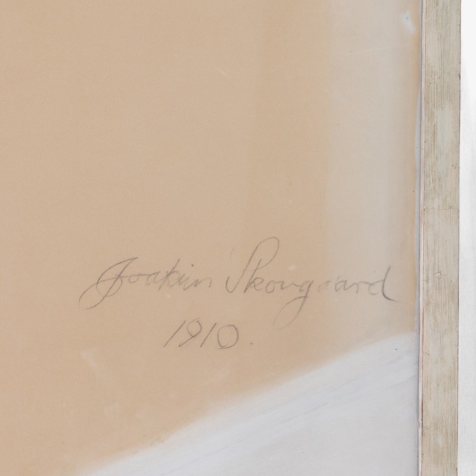 Stor skitse af blyant og let farvelægning i bemalet træramme fra 1910. Signeret af kunstneren.
