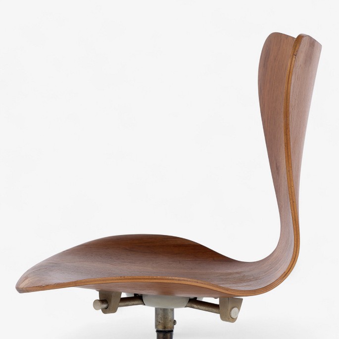 AJ 3117 - 'Syver'-kontorstol i patineret teak på gammelt stel med højdejustering. Stemplet fra producent.