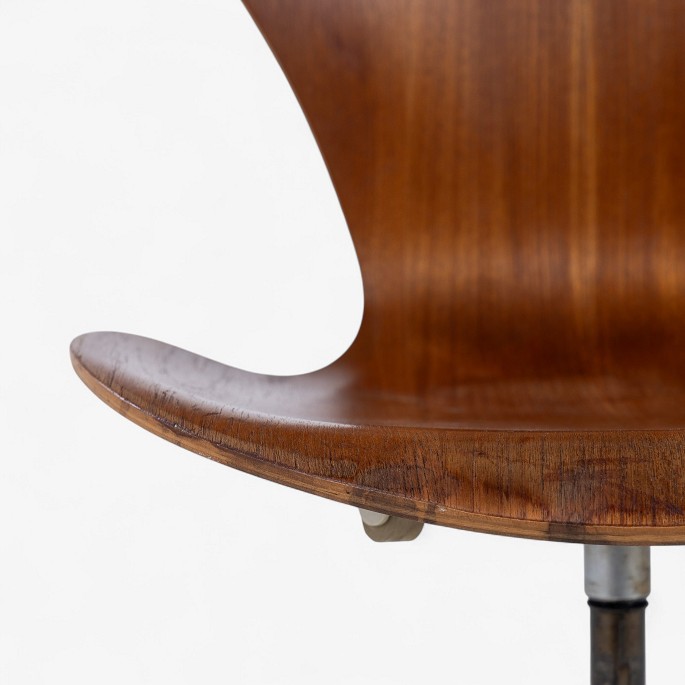 AJ 3117 - 'Syver'-kontorstol i patineret teak på gammelt stel med højdejustering. Stemplet fra producent.