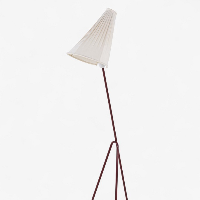Model 569 - 'Giraffen' floor lamp with a frame in patinated red lacquered metal and a white fabric shade.