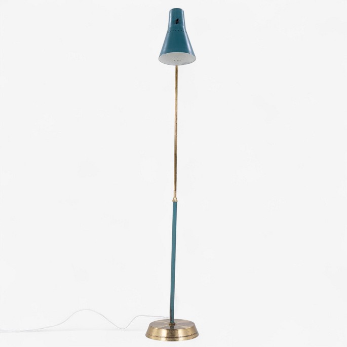 Model KLK 2851 - Gulvlampe i patineret messing og grønlakeret metal.