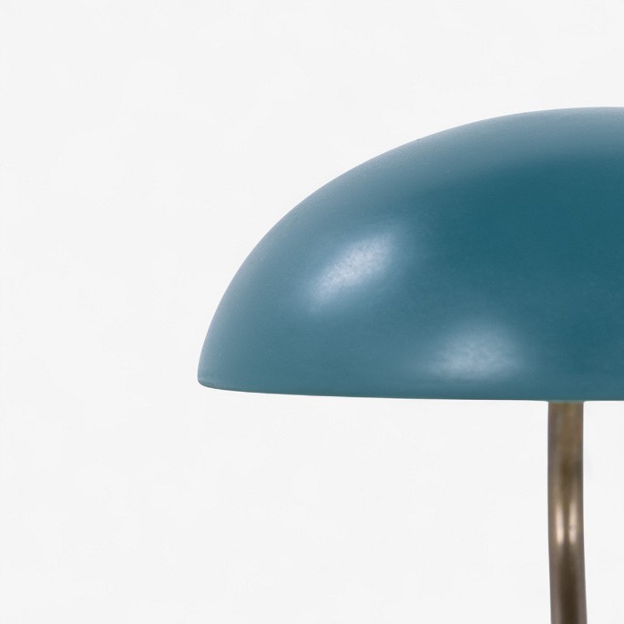 Model E1325 - Bordlampe i grønlakeret metal med justerbar arm i messing.