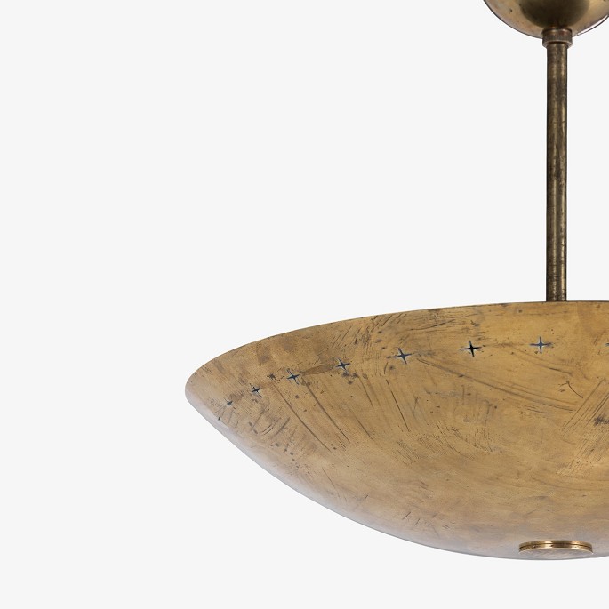 Model 11016 - Ceiling lamp in patinated brass with star-shaped perforations.