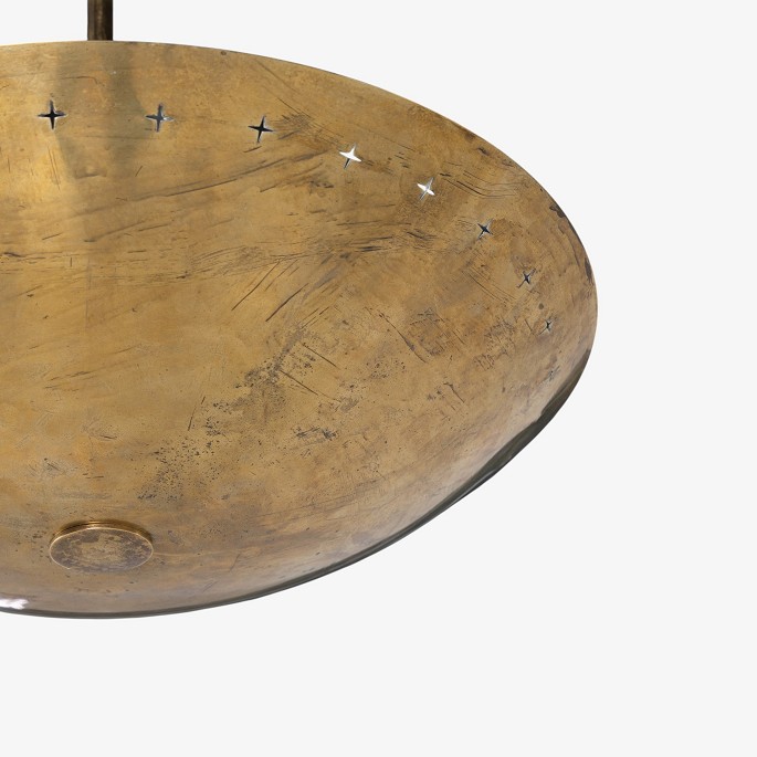 Model 11016 - Ceiling lamp in patinated brass with star-shaped perforations.