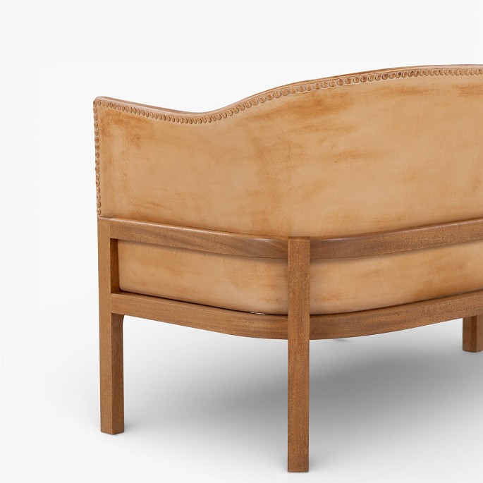 MK 52/2 - 2-seater sofa in patinated, stitched natural leather with a mahogany frame.