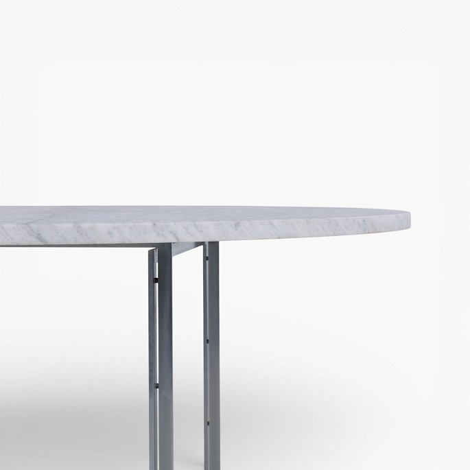 PK 54 - Rundt spisebord med lys flintrullet marmor-plade på stel af matforkromet stål. Formgivet i 1963.