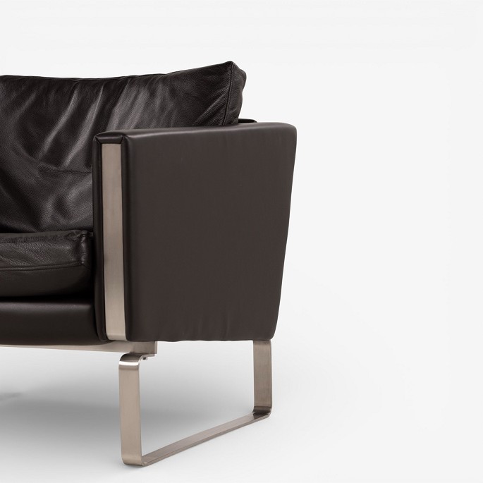 CH 101 - Lænestol i mørkebrunt, patineret semi-anilinlæder med stel i stål. Mærket fra producent.