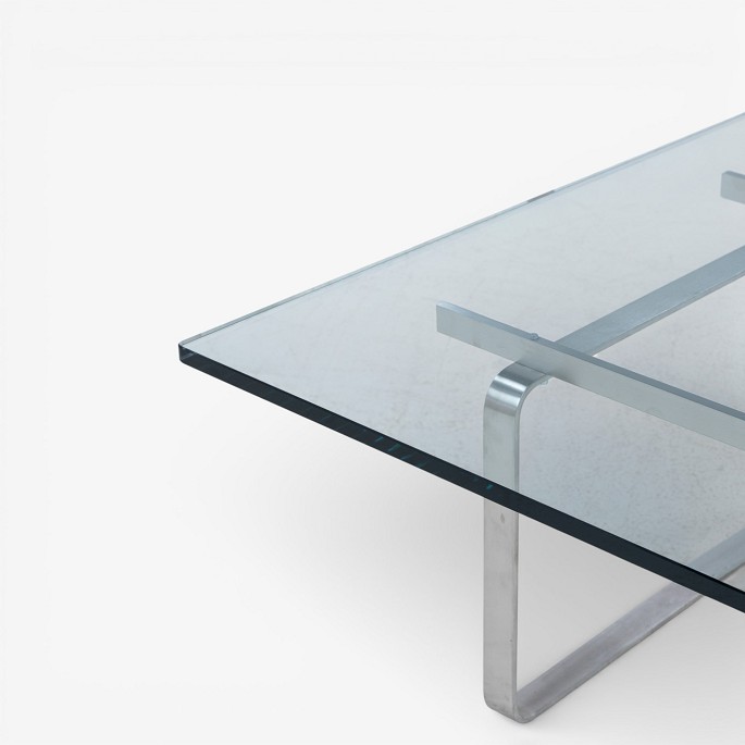 CH 106 - Sofabord med stel i stål og plade i glas.