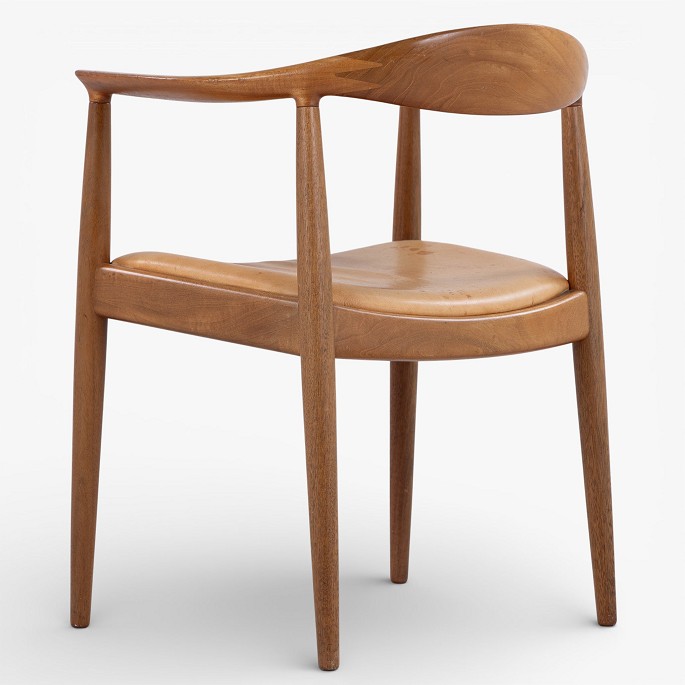 JH 503 - 'The Chair' armchair in mahogany with seat in patinated natural leather. Manufacturer's mark.