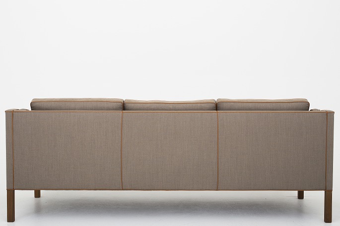 Nybetrukket med Remix stof med keder i cognac læder og ben i teak