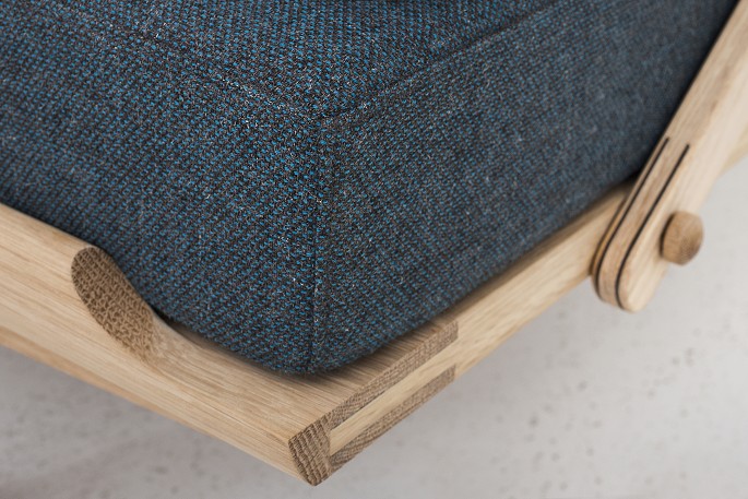 Daybed i eg med hynder betrukket med Clara 2, 884 fra Kvadrat.