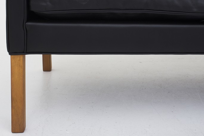 BM 2209 - Nybetrukket 3 pers. sofa i sort Savanne-læder og ben i teak