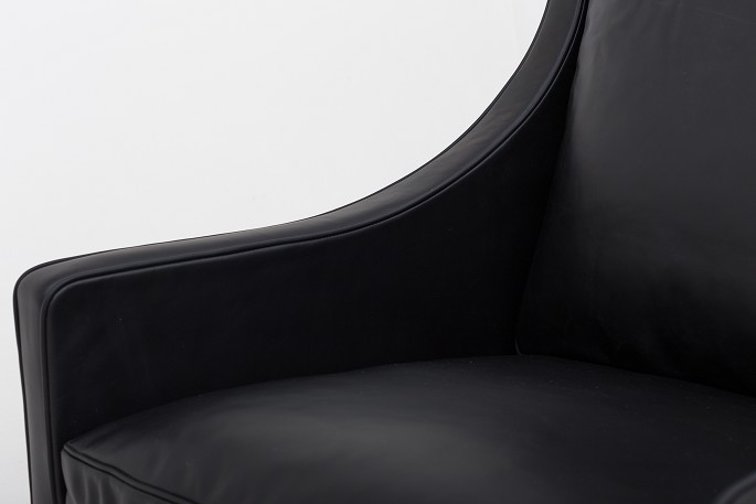BM 2204 - Reupholstered high back chair in black Savanne leather. We can offer upholstery of the BM 2204 in fabric or leather of your choice. Please contact us for more information.