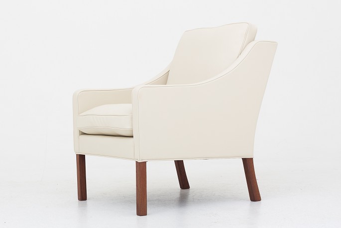 BM 2207 - Nybetrukket lænestol i cremefarvet Paris Cream-læder med ben i mahogni. Vi tilbyder polstring af BM 2207 med stof eller læder efter eget valg.