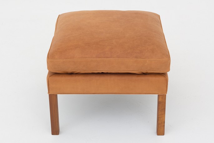 BM 2202 - Reupholstered easy chair in Dunes Cognac leather w. legs in teak. KLASSIK offers upholstery of the foot stool in fabric or leather of your choice.