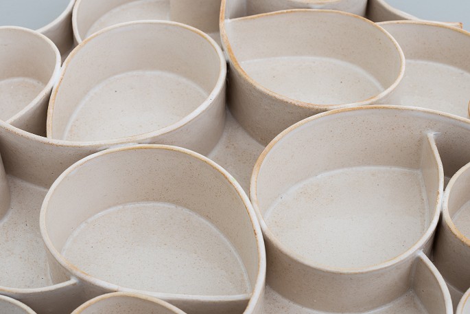 Wall relief in stoneware mounted on wooden board.