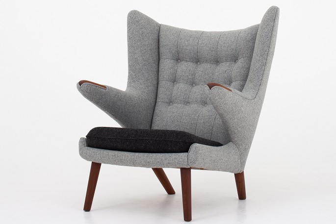 AP 19 - Reupholstered Papa Bear chair in grey Hallingdal 65-wool (code 130) and seat in wool (code 180). KLASSIK offers upholstery of the chair with fabric or leather of your choice. Please contact us for more information.