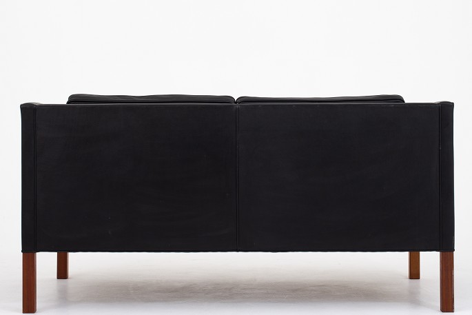 BM 2212 - 2 pers. sofa i originalt, sort læder på ben af mahogni.