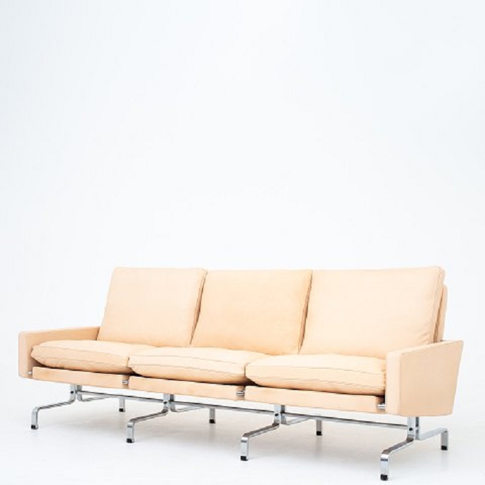 PK 31/3 - Nybetrukket 3 pers. sofa i naturlæder på stel af børstet stål.
