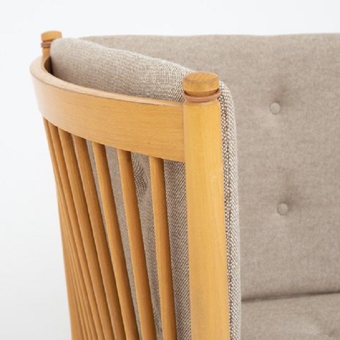 BM 1789 - Nybetrukket Tremmesofa i uld (Hallingdal 65, kode 220) med stel af bøg.