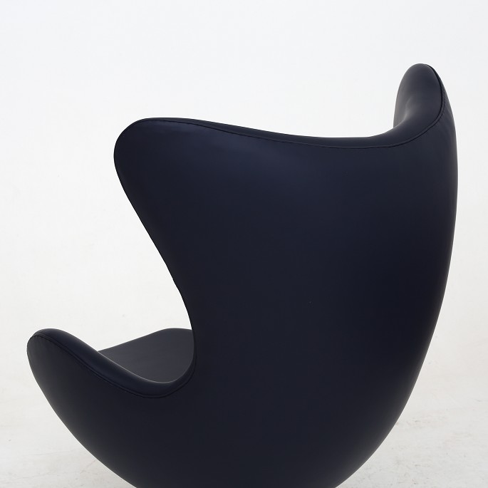 AJ 3316 - Reupholstered 'The Egg' lounge chair in Spectrum Adria leather with tilt function. KLASSIK offers upholstery of the sofa in fabric or leather of your choice.