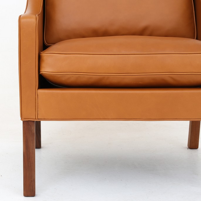 BM 2204 - Nybetrukket 'Øreklapstol' i Envy Cognac-anilinlæder. KLASSIK tilbyder polstring af stolen med stof eller læder efter eget valg.