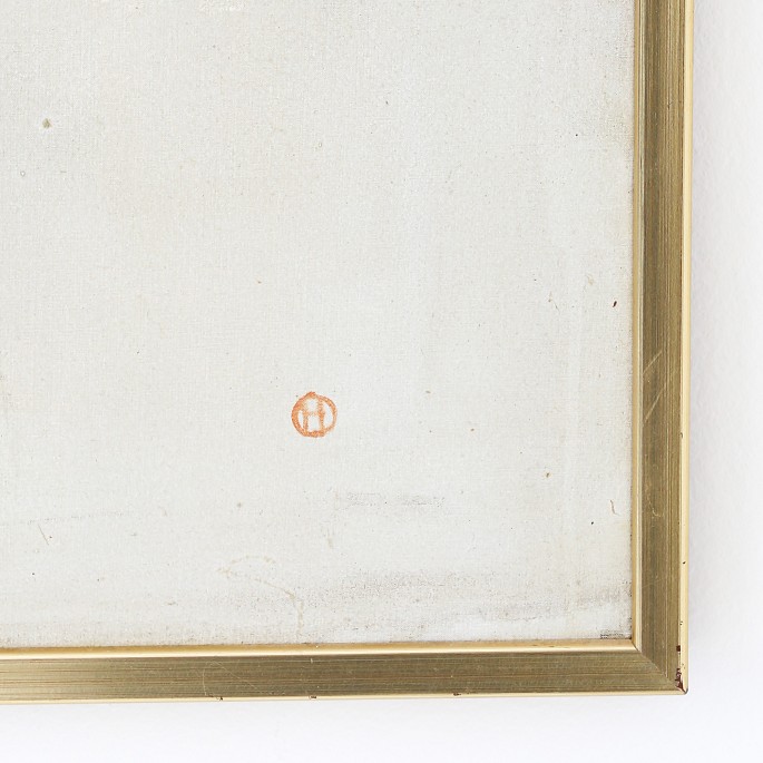 Oliemaleri på lærred. Titel: 'Opstilling til London' fra 1977. Signeret.
