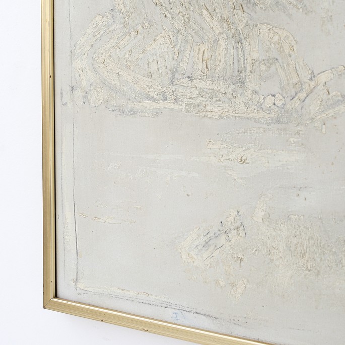 Oil painting on canvas. Title: 'Opstilling til London' / 'Setting for London' from 1977. Signed.