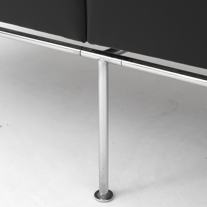 Model AJ 3303 - Reupholstered 3 seater 'Airport Sofa' in black (semi-aniline) Klassik leather on steel frame. Designed in 1956.
