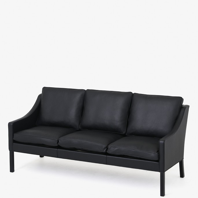 BM 2209 - Nybetrukket 3 pers. sofa i sort Klassik læder og ben i sort bejdset teak. KLASSIK tilbyder polstring af sofaen med stof eller læder efter eget valg.
