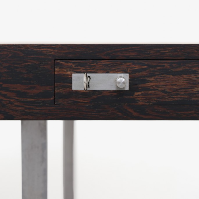 JH 810 - Freestanding desk with wengé top. Front with two drawers, frame and handle in matt chromed steel. Designed in 1970.