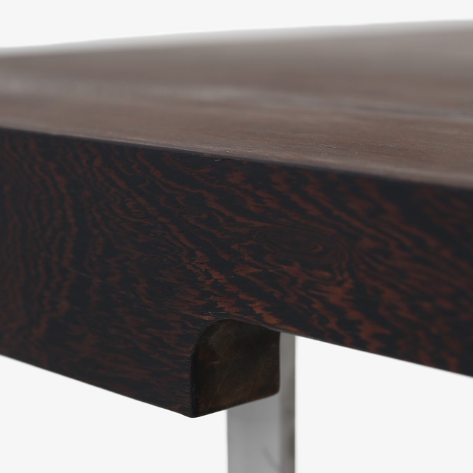 JH 810 - Freestanding desk with wengé top. Front with two drawers, frame and handle in matt chromed steel. Designed in 1970.