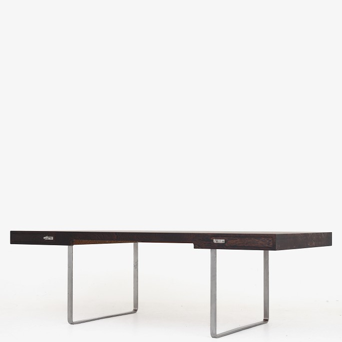 JH 810 - Fritstående skrivebord med kassetteformet top i wengé. Front med to skuffer, bøjlestel og greb af matforkromet stål. Formgivet i 1970.