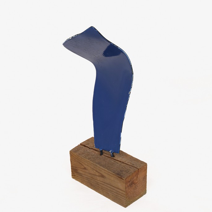Unik blå emaljeskulptur på fod af patineret fyrretræ. Signeret. H. 42 cm