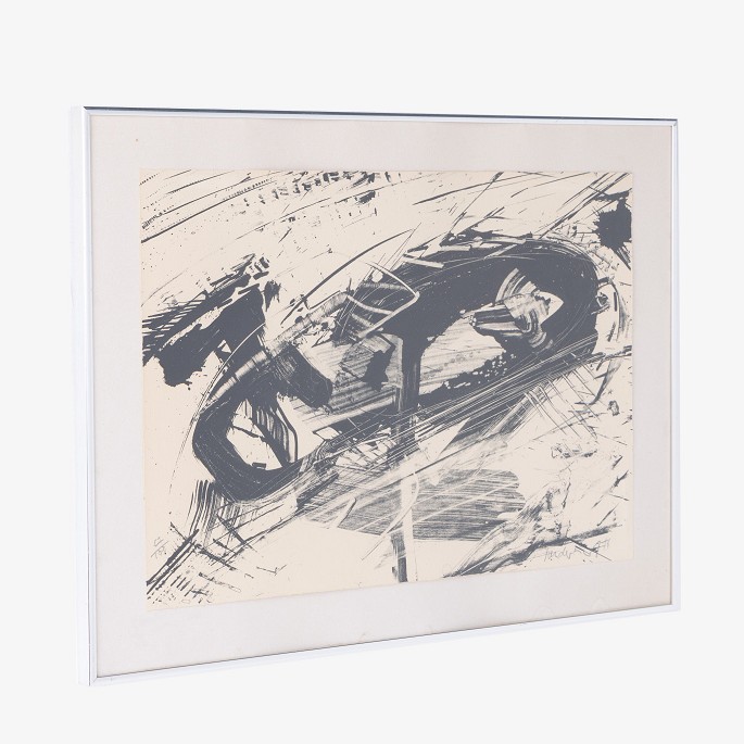 Signed lithograph in silver frame. 67/100. From 1976.