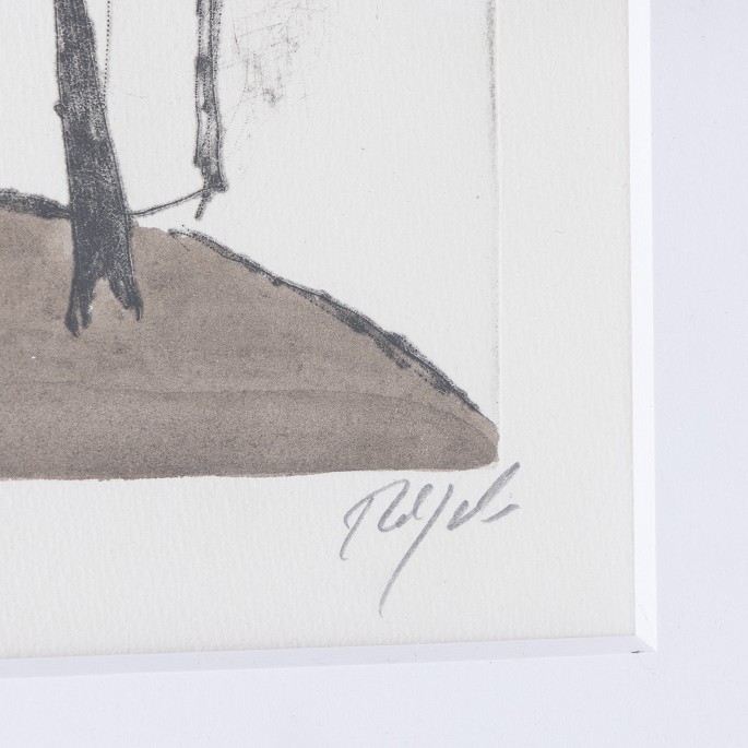 Hand-colored etching ring with passepartout in silver frame. Signed. 14/24.