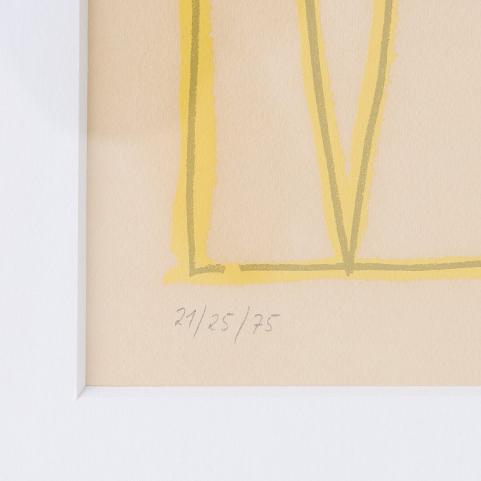 Signeret litografi i guldramme med passepartout. 21/25/75.