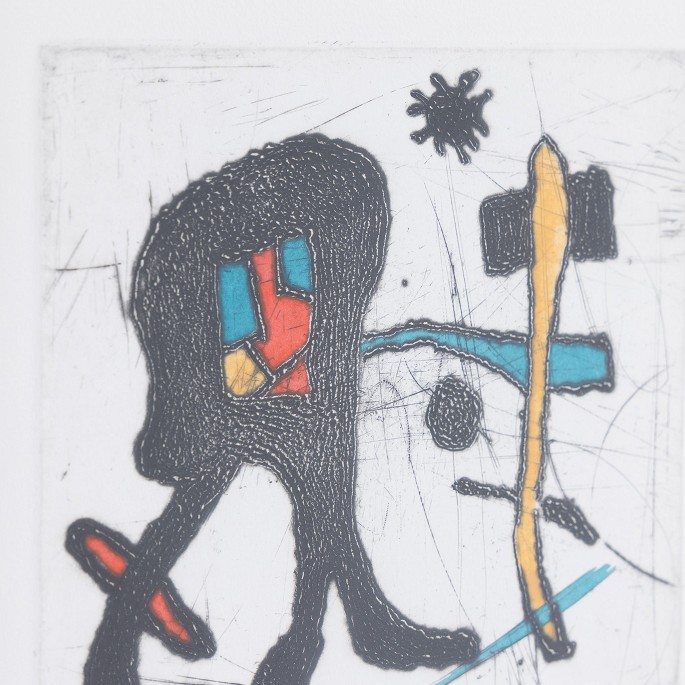 Signeret radering i guldramme og passepartout med inkorporeret mindre ramme. 47/50.