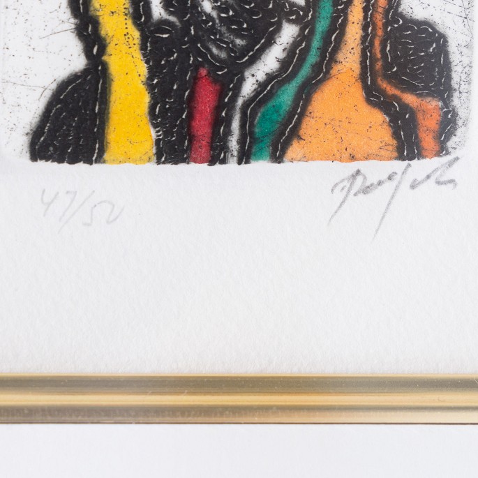 Signeret radering i guldramme og passepartout med inkorporeret mindre ramme. 47/50.
